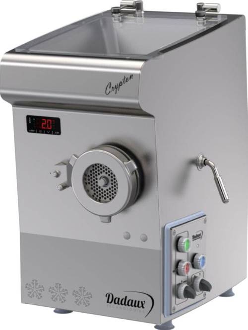 Hachoir réfrigéré 82mm Carter monobloc - corps démontable Corps et réserves réfrigérés Finition Inox brossé Réfrigération par compresseur hermétique et froid statique Régulation par thermostat Double coupe